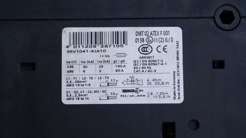 Disjuntor motor Siemens, sirius 3rv1041, 60 a 45Amp semi-novo